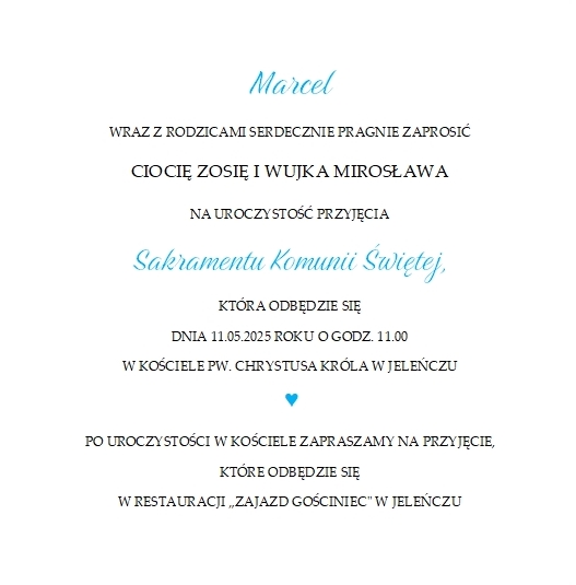 ♥ Tekst w środku czarny lub pod kolor zaproszenia.